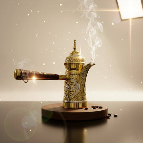 Handgefertigte Syrische Dallah-Kaffeekanne aus 100 % Kupfer, Kunstvolle Gravur